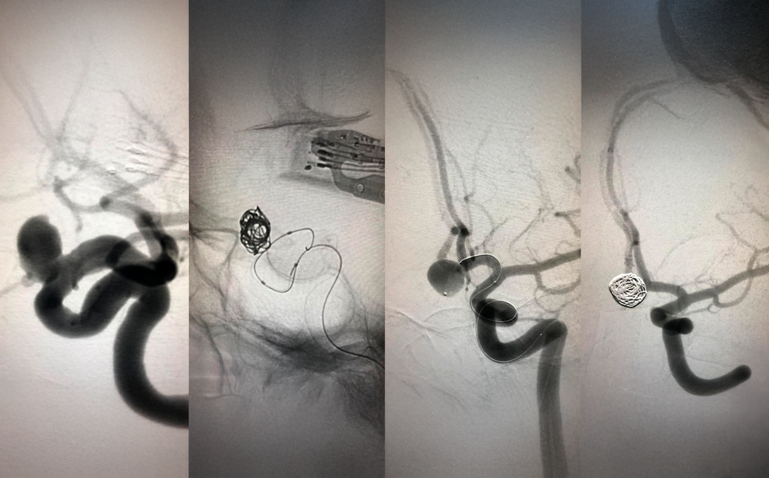 O aneurisma cerebral é uma dilatação localizada no calibre de uma artéria, devido a uma fraqueza na sua parede, principalmente nas bifurcações. Fatores de risco como hipertensão arterial, tabagismo e antecedentes familiares aumentam a chance do aparecimento e rotura dessa malformação arterial. A rotura de um aneurisma cerebral leva ao óbito em 50% dos casos no primeiro mês sem tratamento. A colocação de um clipe metálico no colo do aneurisma por microcirurgia foi o padrão ouro por várias décadas. Mas, a neurocirurgia endovascular tornou-se a terapia de escolha, por ser menos agressiva, com baixa morbidade e alto índice de oclusão do aneurisma.